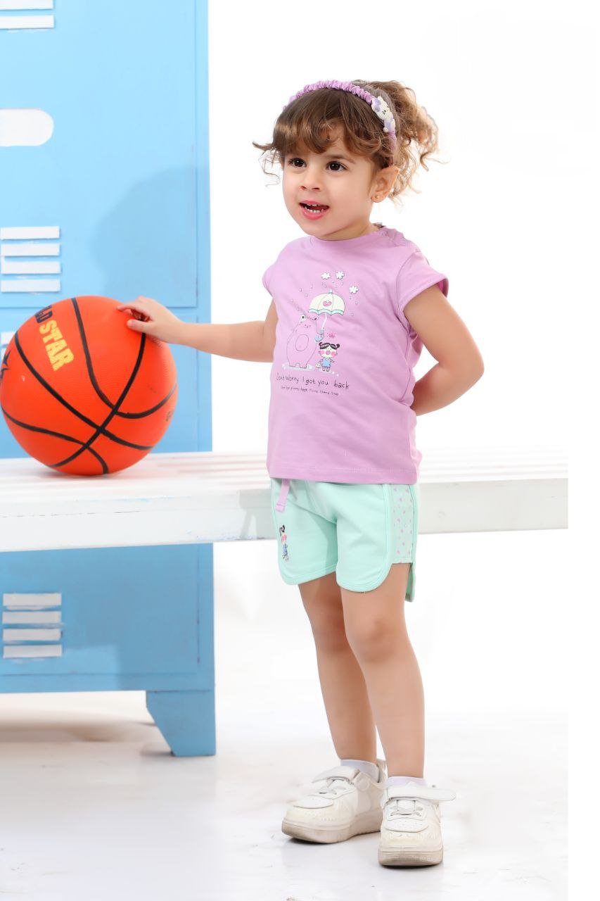 بيجامة نص كم بناتى صيفى مكون من تيشيرت و بنطلون